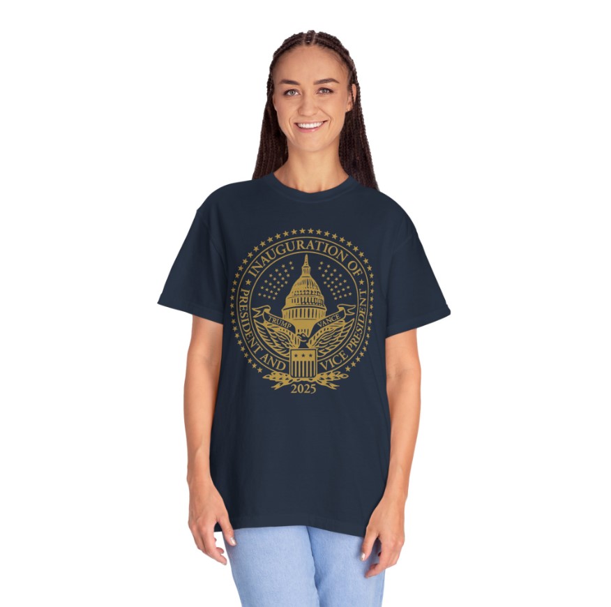Celebrate the historic 2025 inauguration of President Donald Trump with this exclusive commemorative T-shirt.