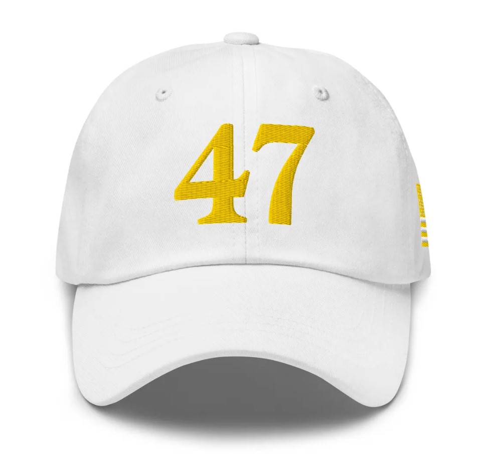 Embroidered “47” logo in vibrant red, white, and blue