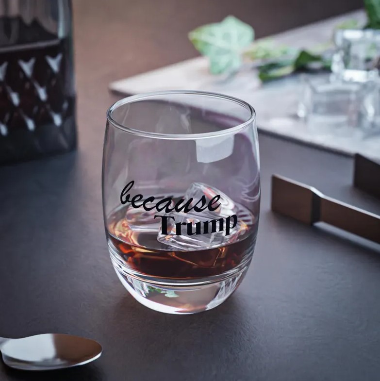 Indulge in your favorite whiskey with a touch of humor and political satire with our exclusive ‘because Trump’ whiskey glass. This witty and eye-catching glass is the perfect way to express your feelings about the current political climate while enjoying a relaxing drink.