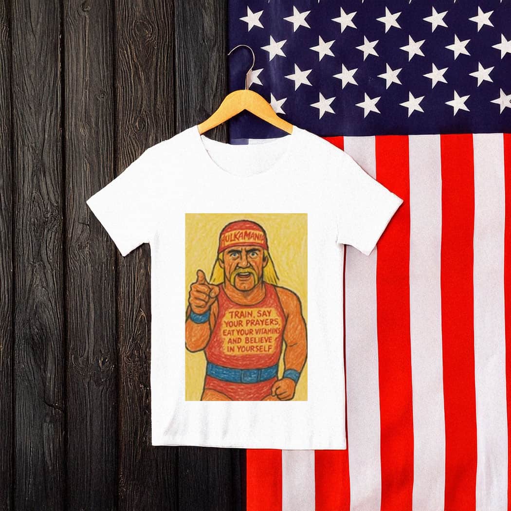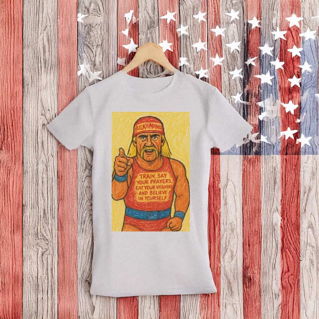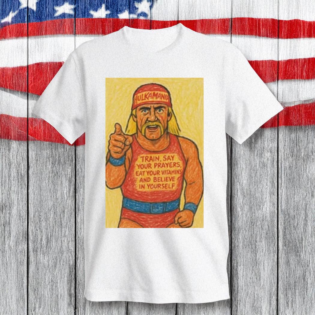 Live by the words that built a wrestling empire with the Hulk Hogan “Train, Say Your Prayers” Shirt. Inspired by the legendary mantra of the Hulkster himself — “Train hard, say your prayers, eat your vitamins, and believe in yourself” — this tee is a throwback to the golden age of wrestling and the powerful values that came with it.