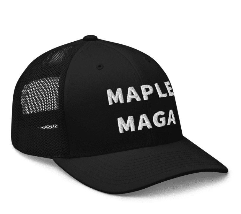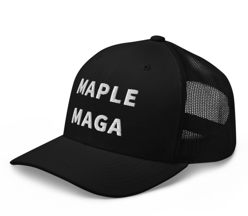 Embroidered “Maple Maga Canada” and “Trump” logos in vibrant colors