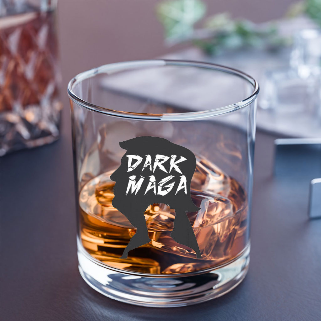 Dark MAGA Finish: The glass is adorned with a sleek, matte black finish that evokes the bold and unapologetic spirit of the Dark MAGA movement.