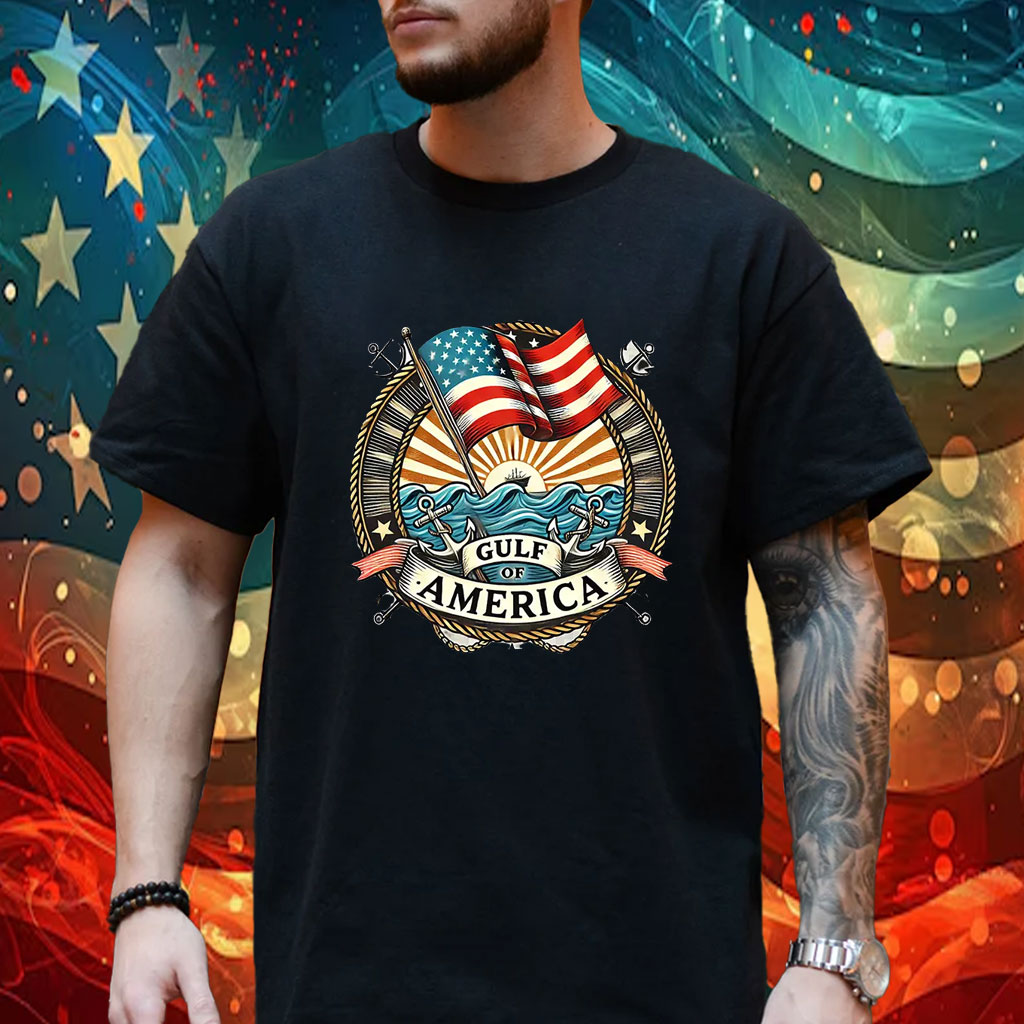 Patriot Pride Mens Political Gulf Of America USA Flag Ocean Scenery Shirt