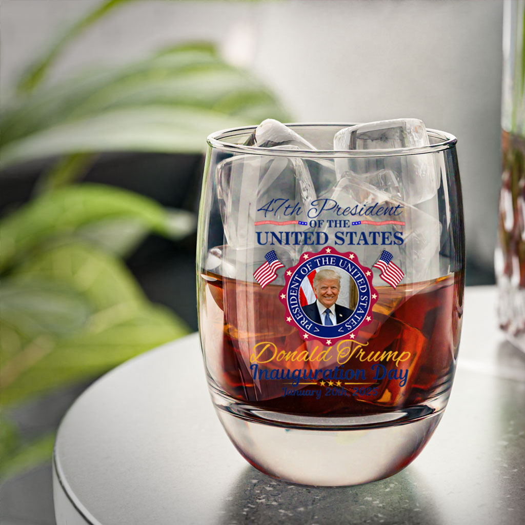 Celebrate the historic Inauguration Day of President Donald Trump in 2025 with this exclusive commemorative whiskey glass.