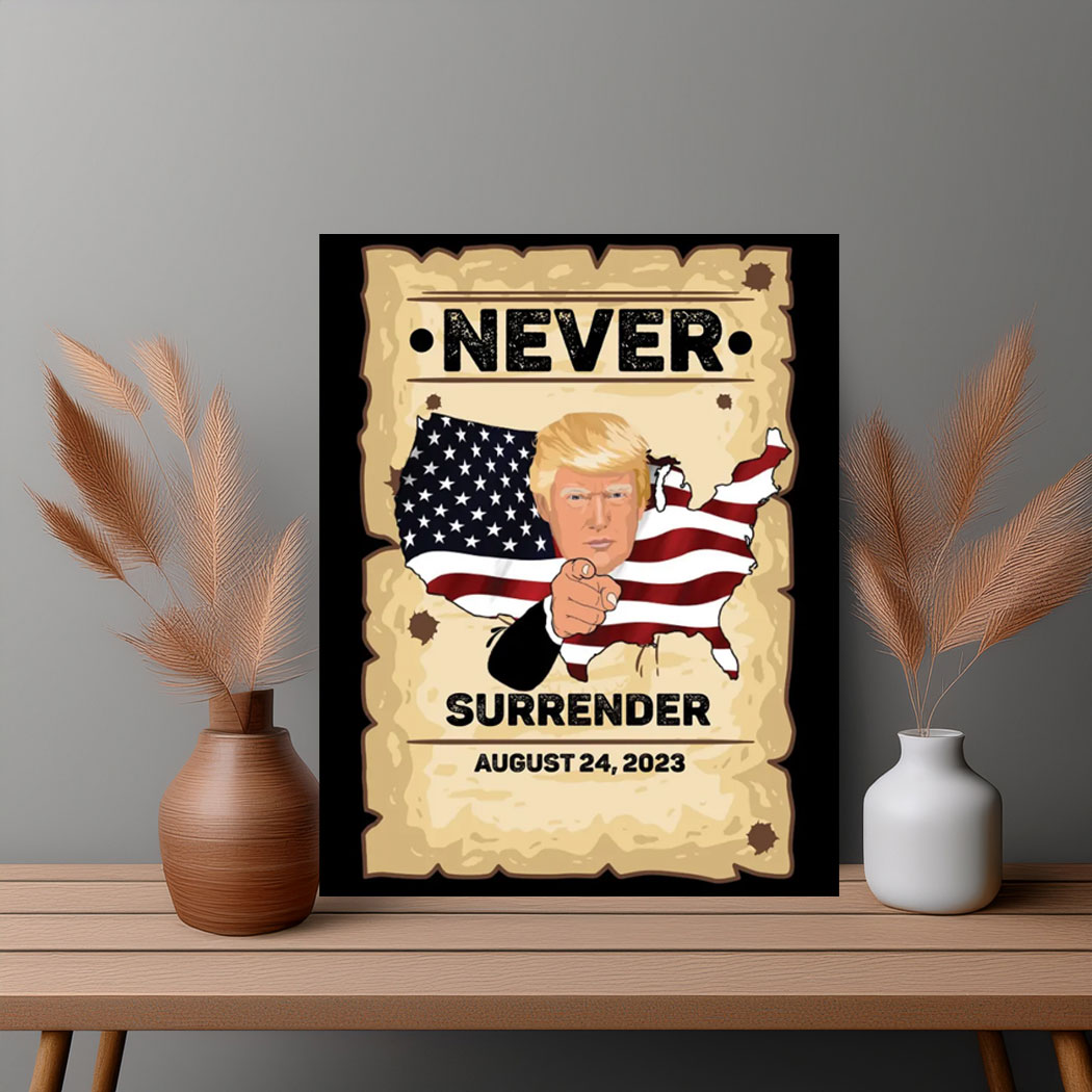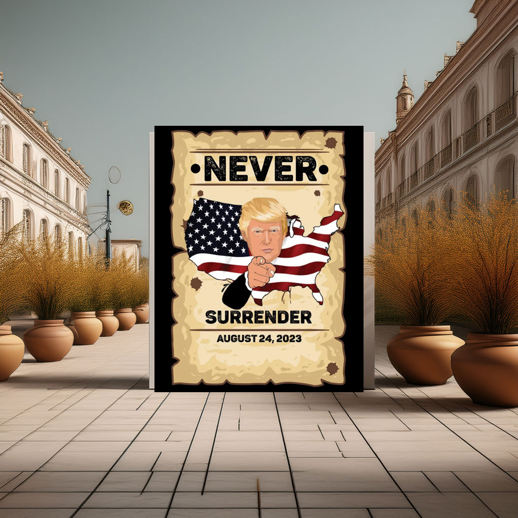 Unleash your unwavering support for President Trump with this powerful “Never Surrender” poster! A vibrant and bold declaration of loyalty, this high-quality poster features a striking image of President Trump alongside his iconic slogan. Printed on premium, thick poster board, it boasts vibrant, long-lasting colors that resist fading, ensuring your unwavering support remains vividly displayed for years to come. Measuring [Insert Dimensions Here], it’s the perfect size for any room โ from your office to your man cave, making a bold statement wherever it’s placed. More than just a poster, it’s a symbol of unwavering belief and a testament to the enduring legacy of a transformative presidency. Show your pride and inspire others with this impactful piece of memorabilia โ a must-have for any true patriot.
