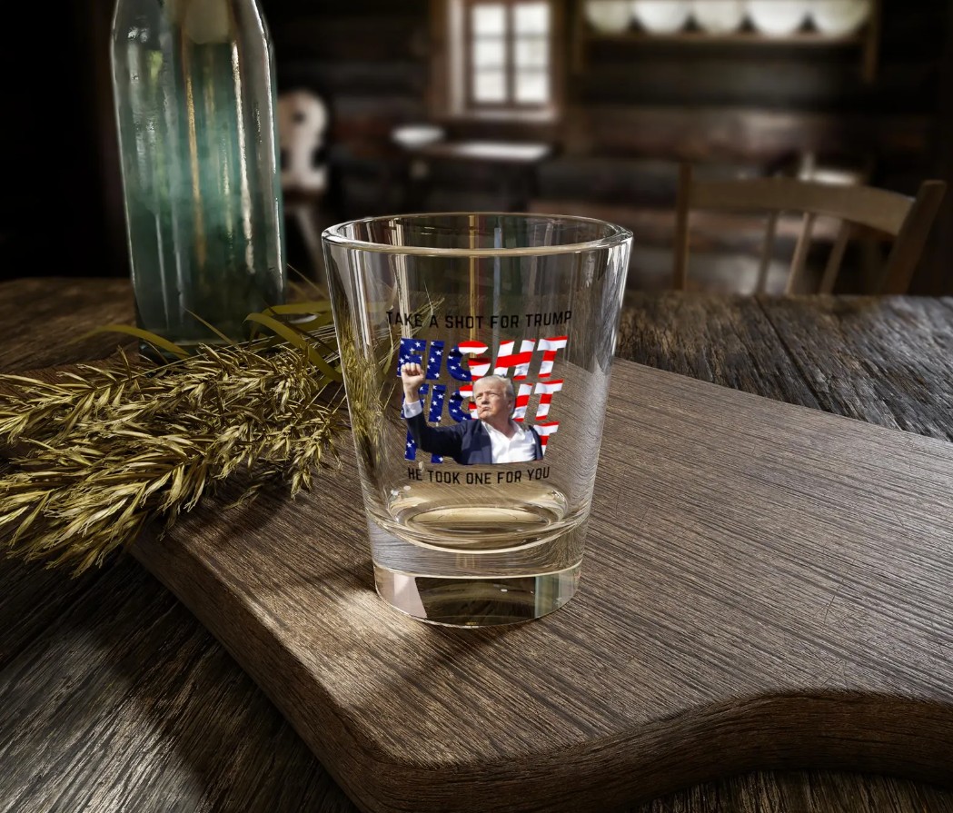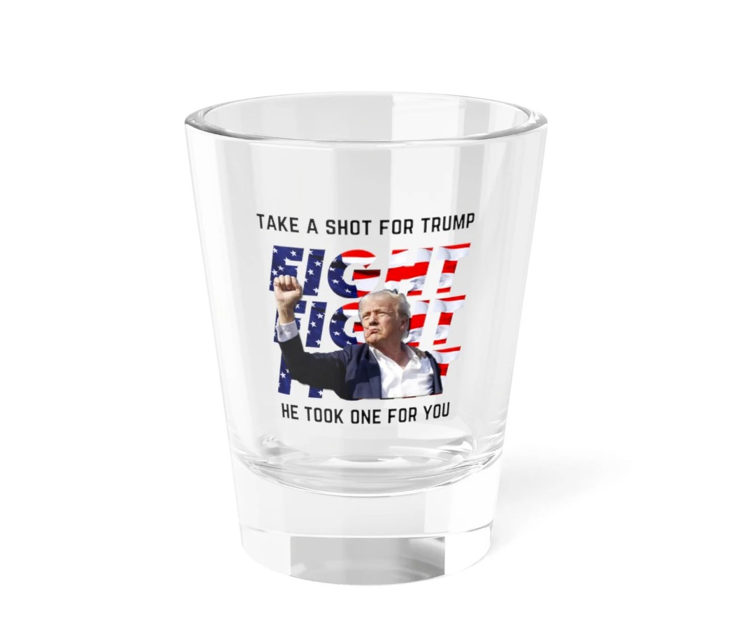 Emblazoned with the iconic “Take a Shot for Trump, He Took a Shot for You” slogan
