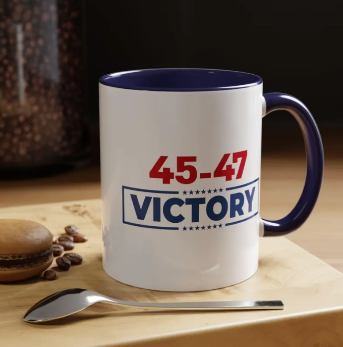 A Collector’s Item: Preserve a piece of history with this commemorative mug, a testament to the 45-47 Victory.