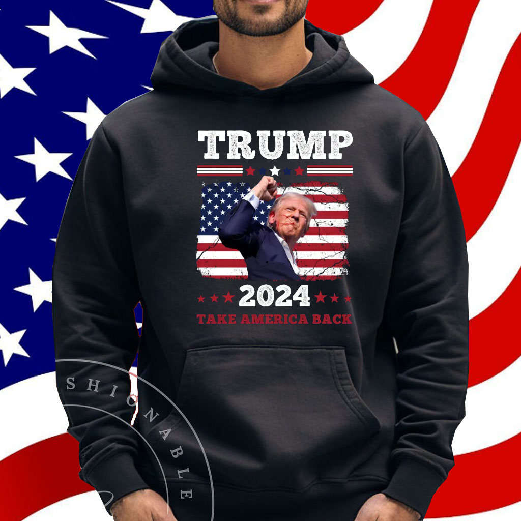 Show your unwavering support for President Trump with our exclusive “Trump Fist Pump Shot At” T-shirt. This bold and patriotic tee features a striking image of the President’s iconic fist pump, captured in a moment of defiance and determination.