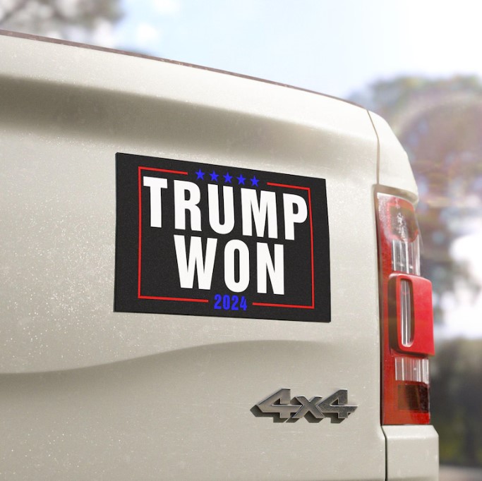 Order your “Trump Won 2024” car magnet today and proudly proclaim your political stance. Let the world know that you believe in the greatness of America and the leadership of President Trump.