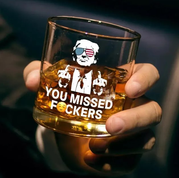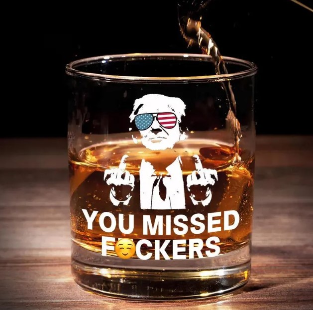 Trump You Missed Whiskey Glass, 45 47 President Trump Glass